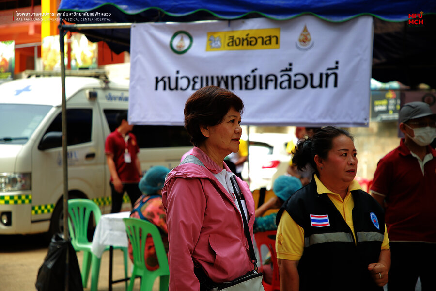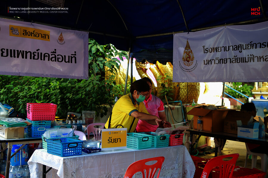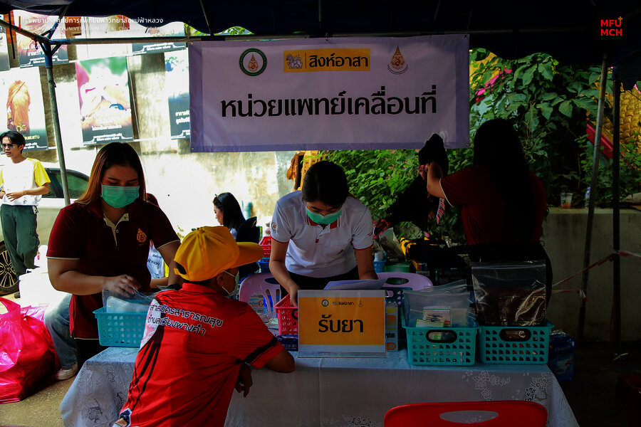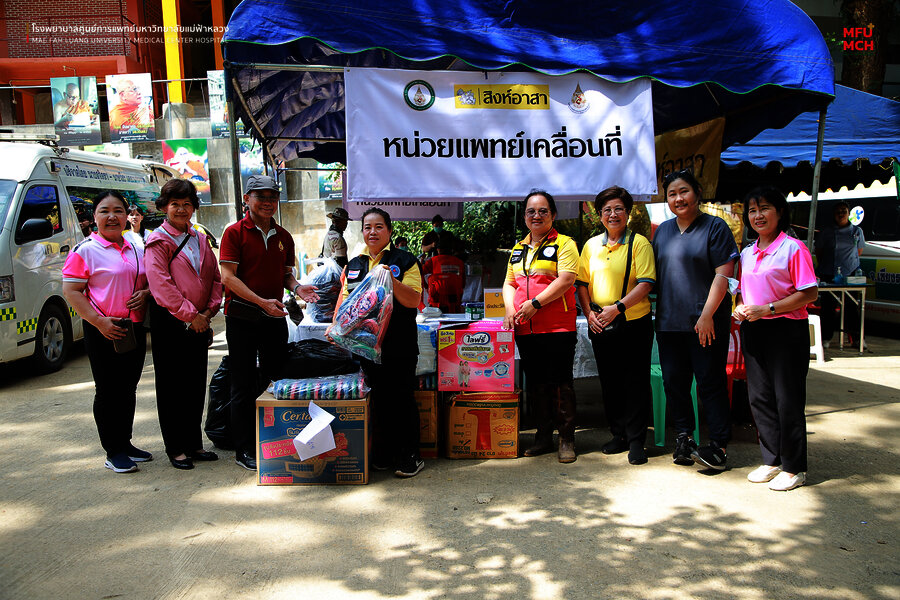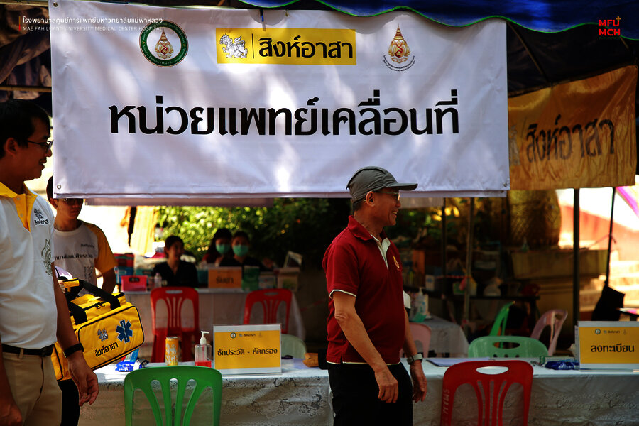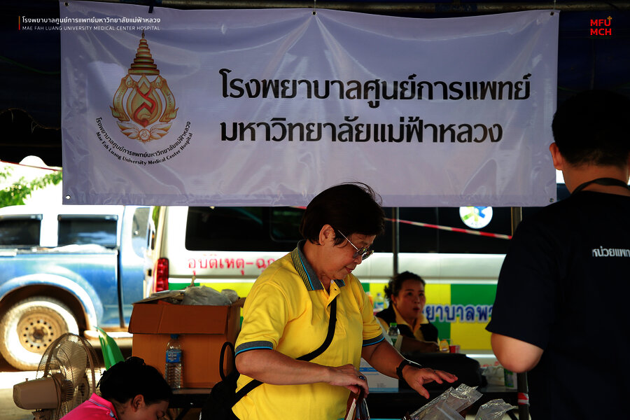 วันที่ 14 ตุลาคม 2567 โรงพยาบาลศูนย์การแพทย์มหาวิทยาลัยแม่ฟ้าหลวง ร่วมกับโครงการสิงห์อาสา ได้จัดหน่วยแพทย์เคลื่อนที่เข้าให้บริการตรวจรักษาแก่ประชาชนที่ได้รับผลกระทบจากอุทกภัย ณ วัดถ้ำผาจม อำเภอแม่สาย จังหวัดเชียงราย โดยมี ศาสตราจารย์ นายแพทย์อภิรักษ์ ช่วงสุวนิช รักษาการผู้อำนวยการ โรงพยาบาลศูนย์การแพทย์ฯ นำทีมแพทย์ พยาบาล ออกให้บริการตรวจรักษาโรคที่พบได้บ่อยในช่วงน้ำท่วม รวมถึงให้คำปรึกษาและดูแลสุขภาพจิตโดยจิตแพทย์