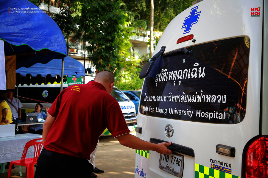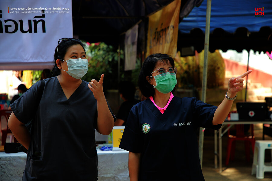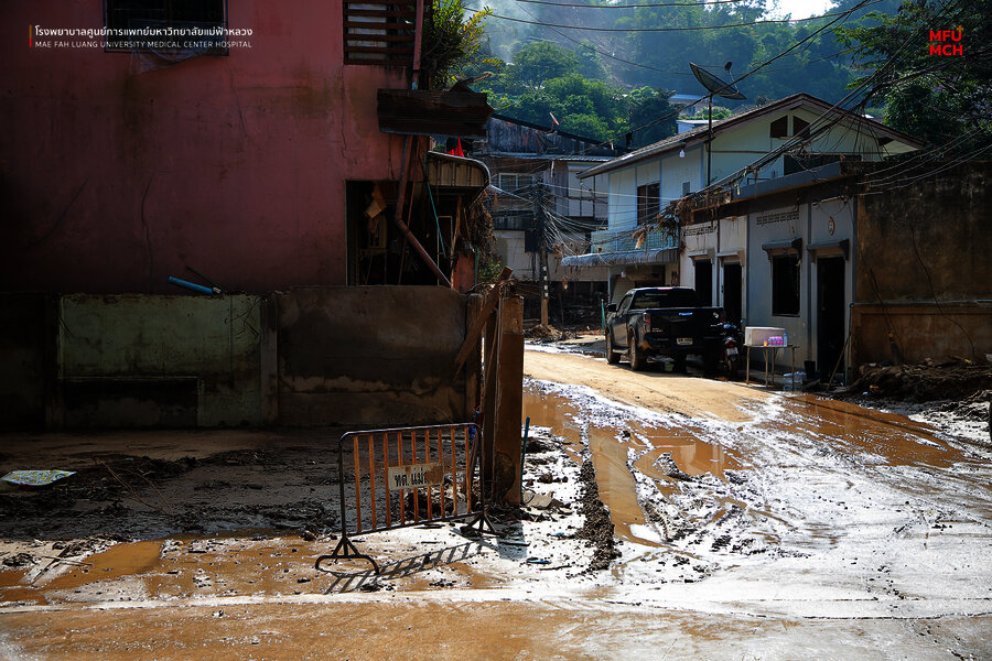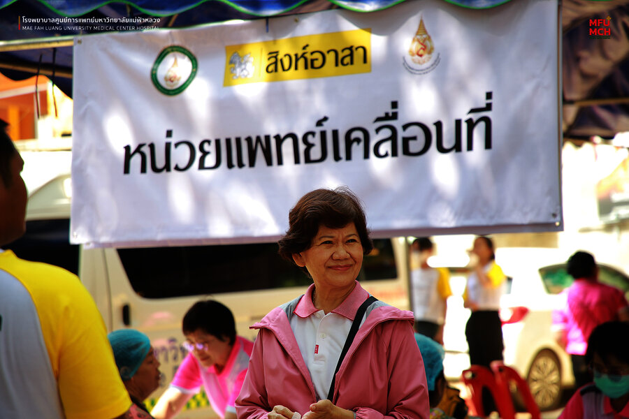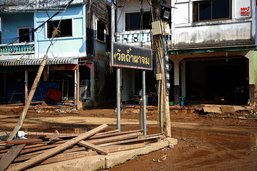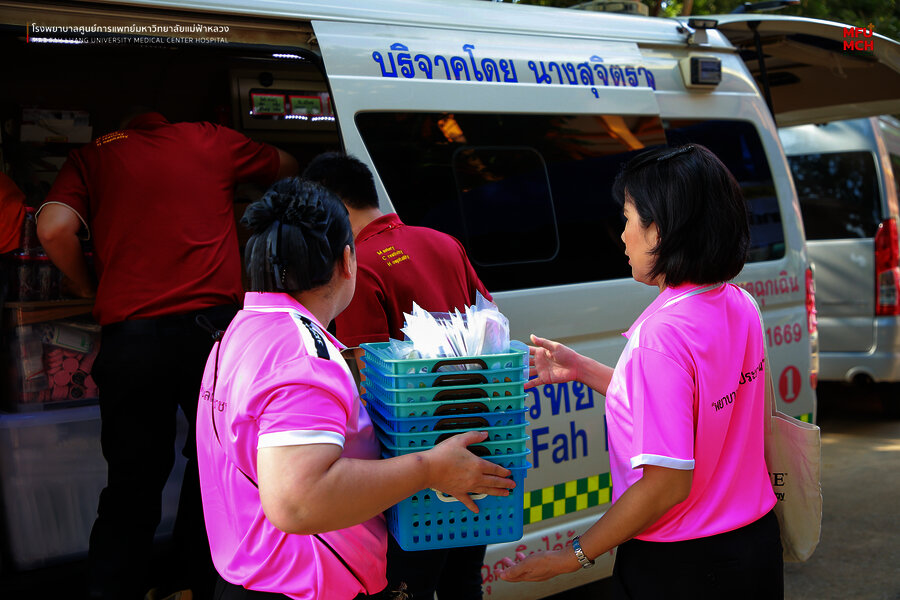 วันที่ 14 ตุลาคม 2567 โรงพยาบาลศูนย์การแพทย์มหาวิทยาลัยแม่ฟ้าหลวง ร่วมกับโครงการสิงห์อาสา ได้จัดหน่วยแพทย์เคลื่อนที่เข้าให้บริการตรวจรักษาแก่ประชาชนที่ได้รับผลกระทบจากอุทกภัย ณ วัดถ้ำผาจม อำเภอแม่สาย จังหวัดเชียงราย โดยมี ศาสตราจารย์ นายแพทย์อภิรักษ์ ช่วงสุวนิช รักษาการผู้อำนวยการ โรงพยาบาลศูนย์การแพทย์ฯ นำทีมแพทย์ พยาบาล ออกให้บริการตรวจรักษาโรคที่พบได้บ่อยในช่วงน้ำท่วม รวมถึงให้คำปรึกษาและดูแลสุขภาพจิตโดยจิตแพทย์
