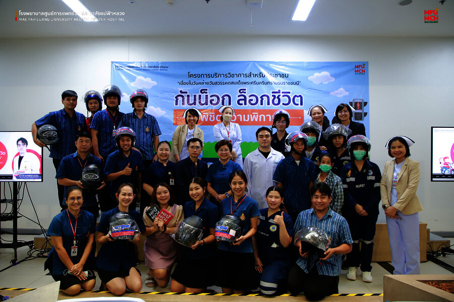 วันที่ 18 กรกฎาคม 2568 เวลา โรงพยาบาลศูนย์การแพทย์มหาวิทยาลัยแม่ฟ้าหลวง จัดโครงการบริการวิชาการสำหรับประชาชน เนื่องในวันคล้ายวันสวรรคต สมเด็จพระศรีนครินทราบรมราชชนนี ภายใต้หัวข้อ “กันน็อก ล็อคชีวิต พิชิตความพิการ” ณ บริเวณสวนหน้าเอกซเรย์ ชั้น 1 อาคารพิเคราะห์บำบัดโรค โดยมีประชาชน และบุคลากรเข้าร่วมกิจกรรมอย่างคับคั่ง