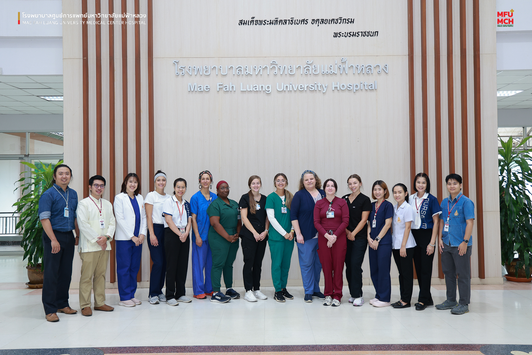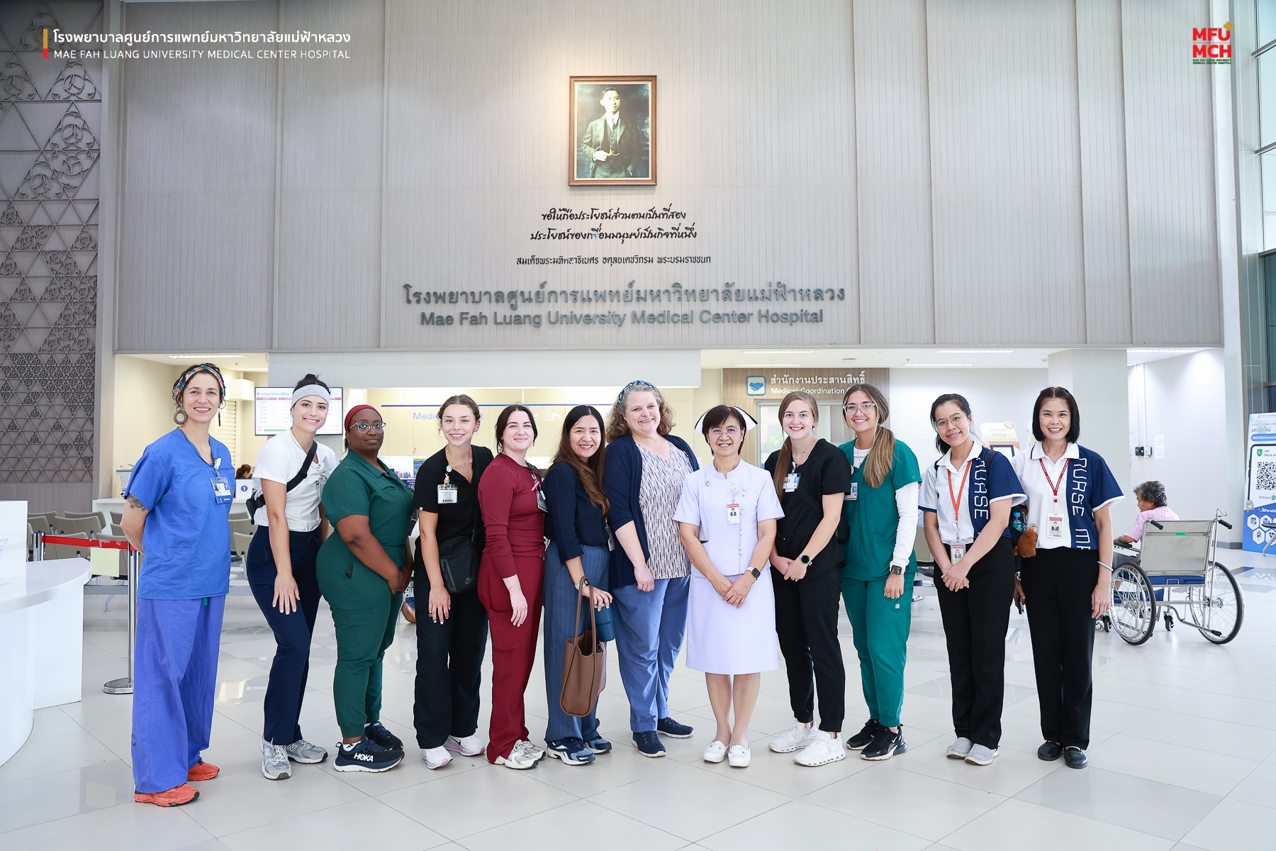 วันที่ 22 สิงหาคม 2568 — โรงพยาบาลศูนย์การแพทย์มหาวิทยาลัยแม่ฟ้าหลวง (รพศ. มฟล.) ให้การต้อนรับคณะอาจารย์และนักศึกษาจาก Oregon Health and Science University, School of Nursing ประเทศสหรัฐอเมริกา ในโอกาสเข้าศึกษาดูงานด้านระบบสุขภาพในประเทศไทย