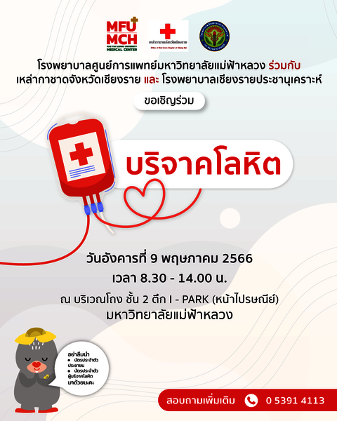 โรงพยาบาลศูนย์การแพทย์มหาวิทยาลัยแม่ฟ้าหลวง ร่วมกับ เหล่ากาชาดจังหวัดเชียงราย และโรงพยาบาลเชียงรายประชานุเคราะห์