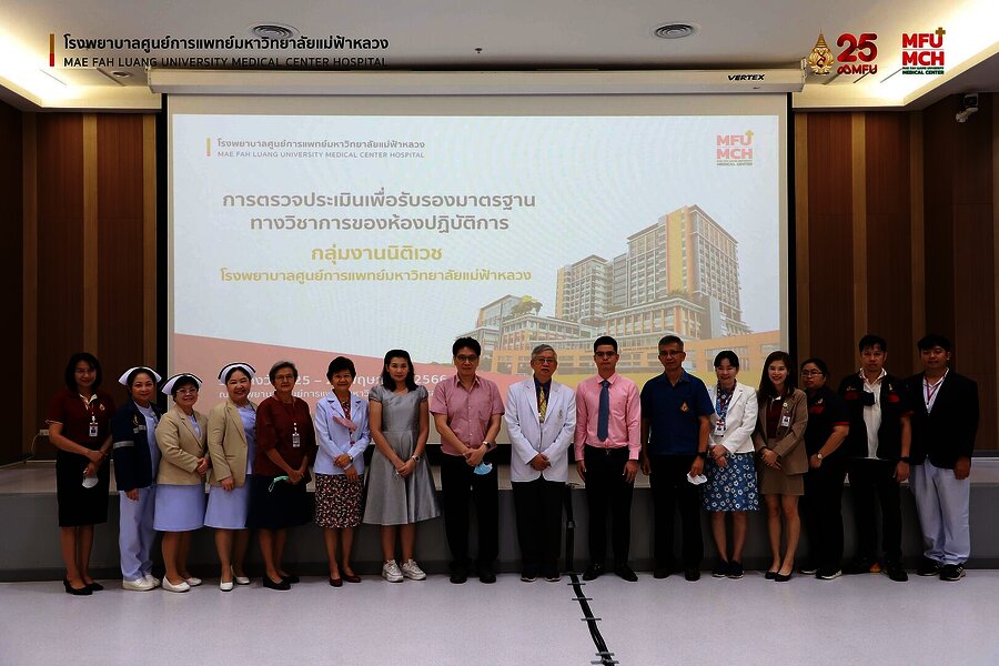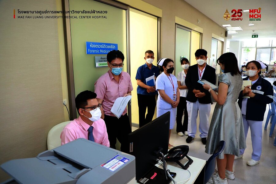 25-26 พฤษภาคม 2566 คณะอนุกรรมการ รับรองมาตรฐานการปฏิบัติงานทางพยาธิวิทยา และนิติเวชศาสตร์ ราชวิทยาลัยพยาธิแพทย์แห่งประเทศไทย โดย ผศ.นพ.ณัฐ ตันศรีสวัสดิ์ ประธานกรรมการ และกรรมการตรวจประเมิน และ พญ.สุธิดา ดีพรม กรรมการตรวจประเมินได้เข้าเยี่ยม งานนิติเวช โรงพยาบาลศูนย์แพทย์มหาวิทยาลัยแม่ฟ้าหลวง เพื่อตรวจประเมินรับรองมาตรฐานทางวิชาการของห้องปฏิบัติการ โดยมี ศ.คลินิก พลตรี นพ.อภิชัย ลีละสิริ หัวหน้าฝ่ายการแพทย์ โรงพยาบาลศูนย์การแพทย์มหาวิทยาลัยแม่ฟ้าหลวง ผู้บริหารและบุคลากรโรงพยาบาล ให้การต้อนรับ