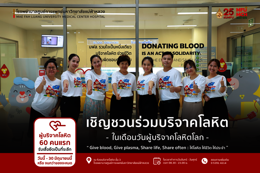 ณ ห้องบริจาคโลหิต ชั้น 3 โรงพยาบาลศูนย์การแพทย์ มฟล.