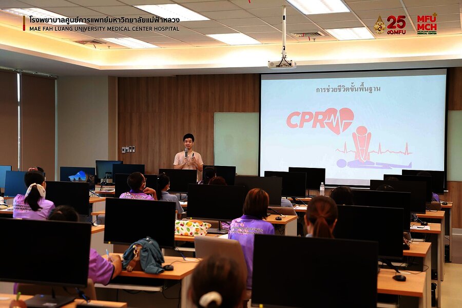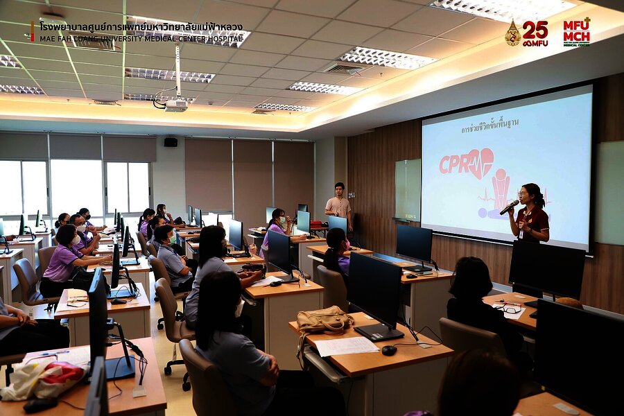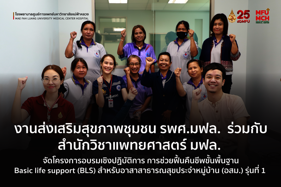 14 กรกฎาคม 2566 งานส่งเสริมสุขภาพชุมชน โรงพยาบาลศูนย์การแพทย์ มฟล. ร่วมกับ สำนักวิชาแพทยศาสตร์ มหาวิทยาลัยแม่ฟ้าหลวง ได้จัดโครงการอบรมเชิงปฏิบัติการ การช่วยฟื้นคืนชีพขั้นพื้นฐาน Basic life support (BLS) สำหรับอาสาสาธารณสุขประจำหมู่บ้าน (อสม.) รุ่นที่ 1 ณ ห้องประชุม ชั้น 6 อาคารสำนักวิชาแพทยศาสตร์ มฟล. โดยมี อาสาสาธารณสุขประจำหมู่บ้าน (อสม.) ในพื้นที่เขตความรับผิดชอบของโรงพยาบาลศูนย์การแพทย์ มฟล. เป็นผู้เข้าร่วมการอบรม โดย อ.นพ.นฤชิต บุญกังวาน เป็นผู้บรรยายหลักร่วมกับพยาบาลวิชาชีพ และนักปฏิบัติการฉุกเฉินการแพทย์