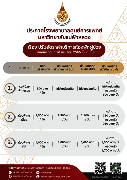 ประกาศ โรงพยาบาลศูนย์การแพทย์มหาวิทยาลัยแม่ฟ้าหลวง