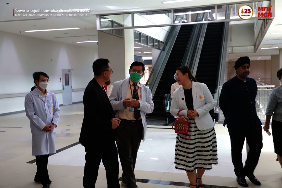 30 ตุลาคม 2566 โรงพยาบาลศูนย์การแพทย์มหาวิทยาลัยแม่ฟ้าหลวง ได้ให้การต้อนรับผู้เข้าร่วมพิธีเปิดโครงการขับเคลื่อน "เชียงรายเมืองแห่งสุขภาพ (Chiang Rai Wellness City)" โดยเป็นกลุ่มผู้บริหารจากหน่วยงานภาครัฐและเอกชน ได้แก่ กรมการแพทย์แผนไทยและการแพทย์ทางเลือก, บริษัท บูทิค คอร์ปอเรชั่น จำกัด (มหาชน), ศูนย์นวัตกรรมการแพทย์แผนไทย TTMIC, วิสาหกิจชุมชนไทยเฮิร์บเซ็นเตอร์, บริษัท ฟาร์มสุขใจ วิสาหกิจเพื่อสังคม จำกัด, Chivitr Wellness Phuket และMiskawaan Health Group ในการมาเยี่ยมชมหน่วยงานภายในโรงพยาบาล โดยมี ศ.คลินิก พลตรี นพ.อภิชัย ลีละสิริ รักษาการแทนรองผู้อำนวยการ ฝ่ายพัฒนาคุณภาพและบริการทางการแพทย์ และคุณประชิด ศราธพันธุ์ รองผู้อำนวยการ ฝ่ายการพยาบาล โรงพยาบาลศูนย์การแพทย์มหาวิทยาลัยแม่ฟ้าหลวง ให้การต้อนรับและพาเยี่ยมชมหน่วยงาน