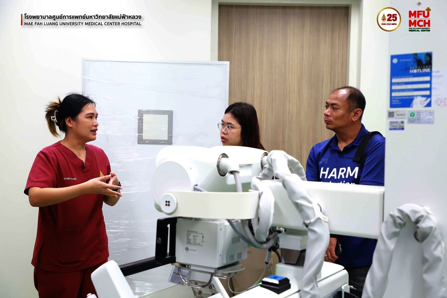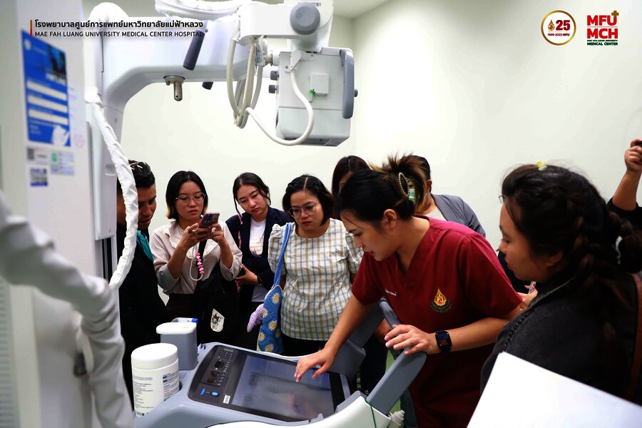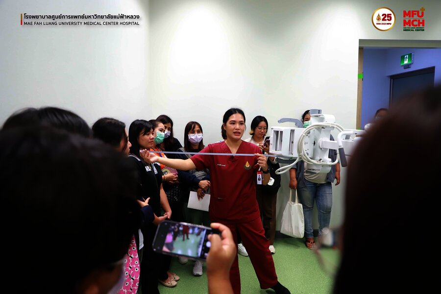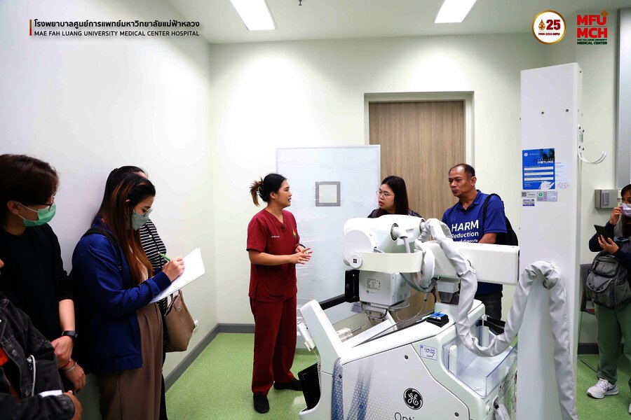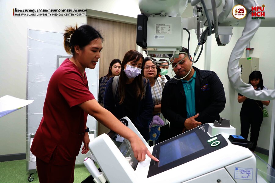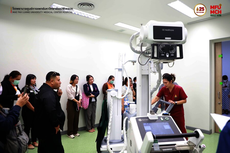 31 ตุลาคม 2566 คณะศึกษาดูงานจากมูลนิธิรักษ์ไทย ได้เข้าเยี่ยมชมศูนย์รังสีวิทยา โรงพยาบาลศูนย์การแพทย์มหาวิทยาลัยแม่ฟ้าหลวง ในการฟังบรรยายการให้คำแนะนำ และประสบการณ์การใช้เครื่อง Portable X-ray โดยมี คุณรุจรินทร์ ศิริวงศ์ รักษาการแทน หัวหน้างานรังสีวิทยา โรงพยาบาลศูนย์การแพทย์มหาวิทยาลัยแม่ฟ้าหลวง ให้การต้อนรับและเป็นผู้บรรยายแนะนำการใช้งานเครื่อง Portable X-ray ดังกล่าว