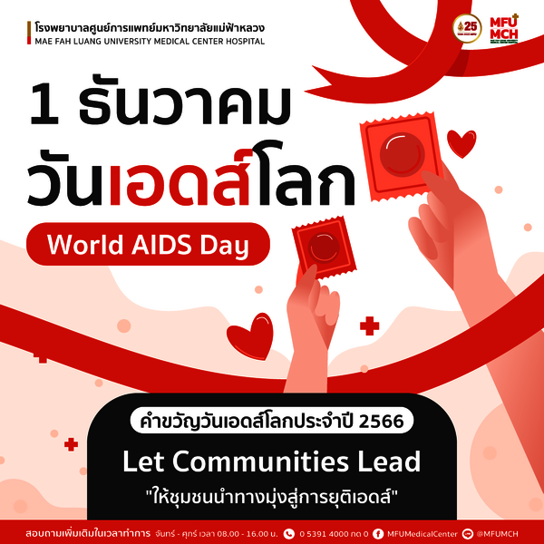 โรคเอดส์ คือ ภาวะภูมิคุ้มกันบกพร่องที่เกิดจากการติดเชื้อไวรัสเอชไอวี โดยในปัจจุบันสามารถวินิจฉัยการติดเชื้อเอชไอวีได้อย่างรวดเร็ว และให้การรักษาด้วยยาต้านไวรัสสำหรับทั้งเด็กและผู้ใหญ่ที่มีเชื้อเอชไอวีเพื่อหยุดการแพร่กระจายของเชื้อเอชไอวีในร่างกาย และป้องกันการดำเนินโรคไปสู่ระยะโรคเอดส์ได้ โดยในปี 2566 นี้คำขวัญวันเอดส์โลก คือ "Let Communities Lead" ซึ่งมีความหมายว่า "ให้ชุมชนนำทางมุ่งสู่การยุติเอดส์" เพื่อสนับสนุนให้มีมาตรการป้องกันโรคเอดส์ และส่งเสริมให้เกิดการยอมรับต่อผู้ป่วยติดเชื้อในสังคมทุกระดับ
