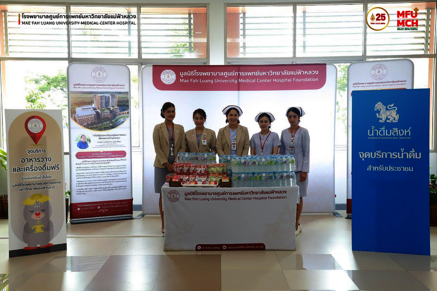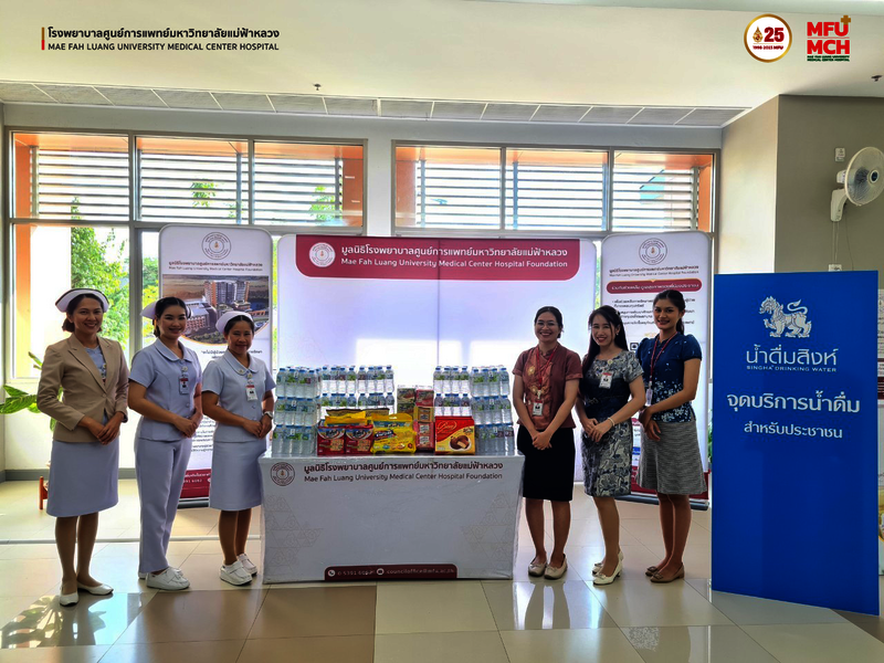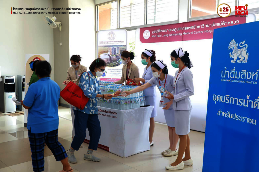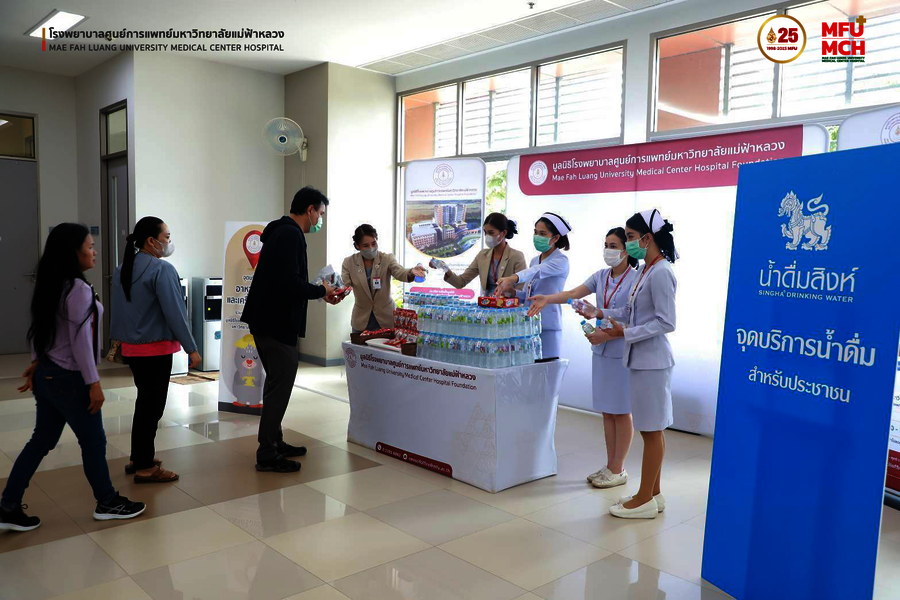 สิงห์อาสา สนับสนุนน้ำดื่มสิงห์ จำนวน 300 แพ็ค พร้อมเครื่องดื่มและอาหารว่าง ให้แก่มูลนิธิโรงพยาบาลศูนย์การแพทย์ มหาวิทยาลัยแม่ฟ้าหลวง เพื่อบริการให้กับผู้มารับบริการ ณ จุดบริการอาหารว่างและเครื่องดื่มของมูลนิธิโรงพยาบาลศูนย์การแพทย์ มหาวิทยาลัยแม่ฟ้าหลวง