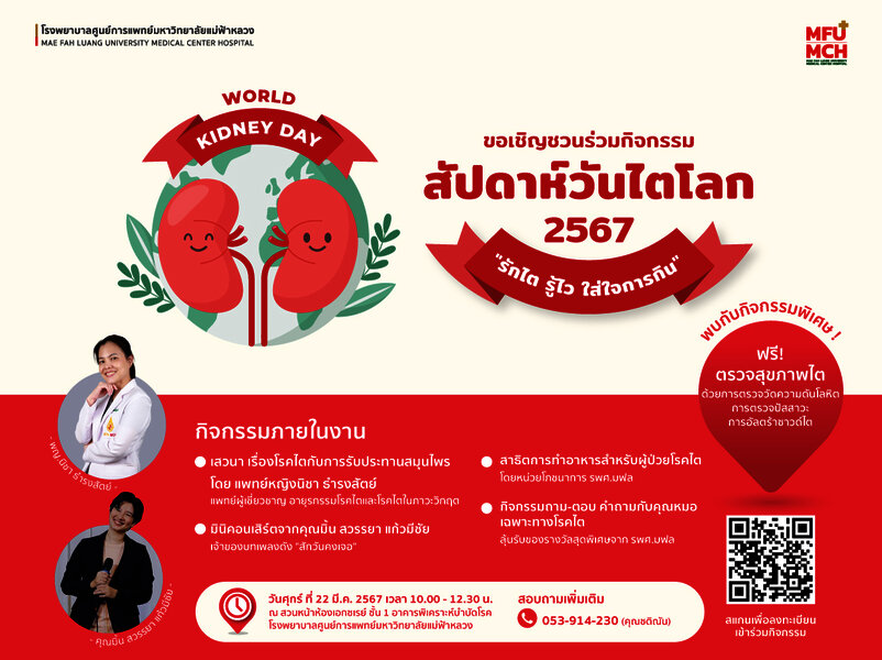 มาร่วมตรวจสุขภาพไต และถามตอบปัญหาสุขภาพ ร่วมกับ แพทย์ผู้เชี่ยวชาญ อายุรกรรมโรคไตในภาวะวิกฤต ลุ้นรับรางวัลภายในงานมากมาย