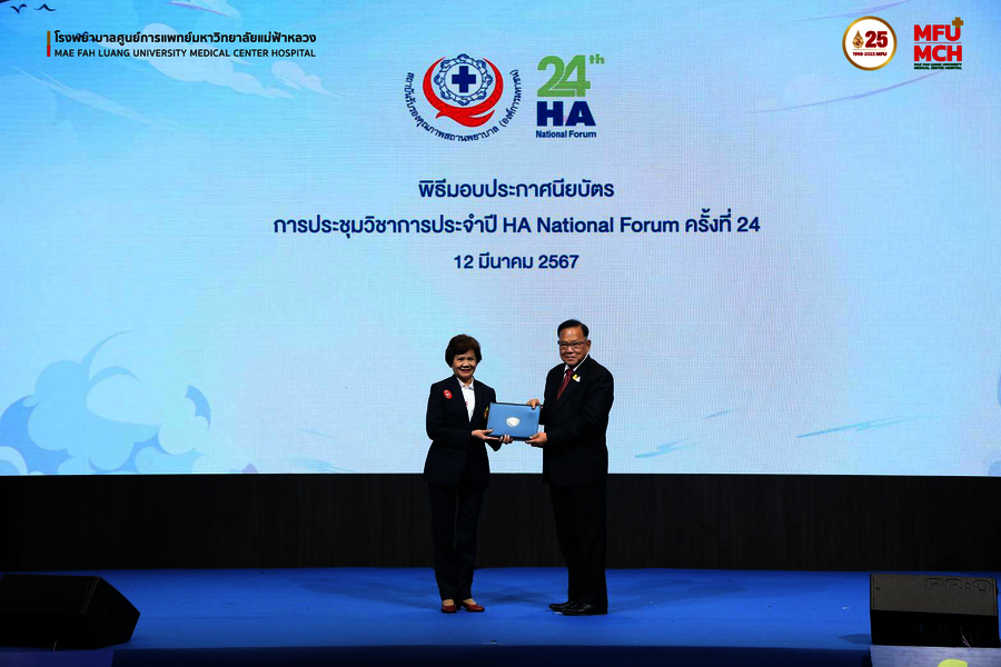 เมื่อวันที่ 12 มีนาคม 2567 โรงพยาบาลศูนย์การแพทย์มหาวิทยาลัยแม่ฟ้าหลวง ได้รับประกาศนียบัตร จากงานประชุมวิชาการประจำปี HA National Forum ครั้งที่ 24 ของสถาบันรับรองคุณภาพสถานพยาบาล (องค์การมหาชน)