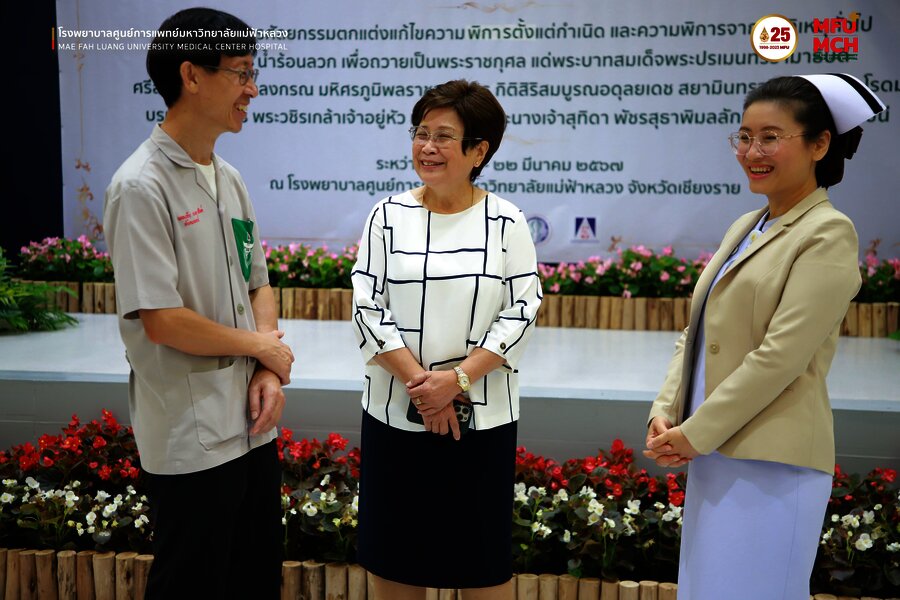 นางสุภาพรรณ หมั่นเจริญ รองผู้ว่าราชการจังหวัดเชียงราย เป็นประธานในพิธีเปิด โครงการศัลยกรรมตกแต่งแก้ไขความพิการแต่กำเนิด และความพิการจากอุบัติเหตุทั่วไปจากไฟไหม้ น้ำร้อนลวก พร้อมด้วย รองศาสตราจารย์ ชุษณะ รุ่งปัจฉิม รองอธิการบดี รักษาการแทน ผู้อำนวยการ ศูนย์การแพทย์มหาวิทยาลัยแม่ฟ้าหลวง, ศ. นพ. อภิรักษ์ ช่วงสุวนิช นายกสมาคมศัลยแพทย์ตกแต่งเสริมสวยแห่งประเทศไทย, ทีมศัลยแพทย์, ทีมพยาบาล และอาสาสมัคร พอ.สว.