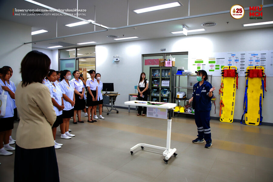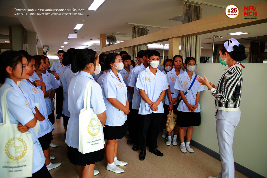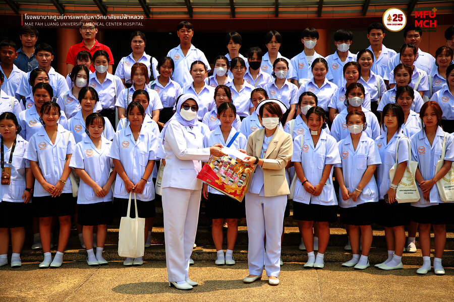 28 มีนาคม 2567 คณะนักเรียนโรงเรียนบริบาลชุมชนเชียงราย ได้มาศึกษาดูงานด้านโครงการสร้างฝ่ายการพยาบาลและบทบาทหน้าที่ของผู้ช่วยเหลือผู้ป่วย โดยมี คุณบุษบา ชัยคำ ผู้ช่วยหัวหน้าฝ่ายการพยาบาล ด้านบริหาร พร้อมทีมการพยาบาล ให้การต้อนรับ อีกทั้งได้แนะนำองค์กรพยาบาลและพาเยี่ยมชมหน่วยงาน ณ โรงพยาบาลศูนย์การแพทย์มหาวิทยาลัยแม่ฟ้าหลวง