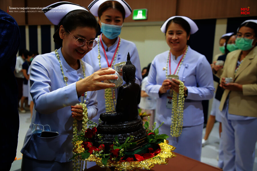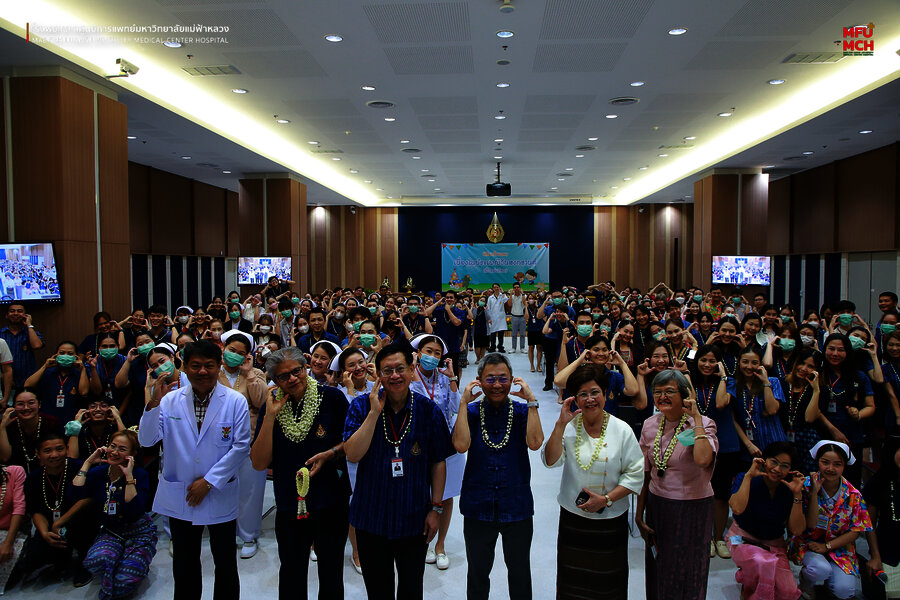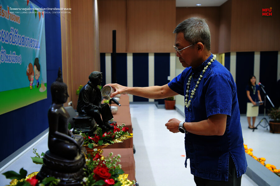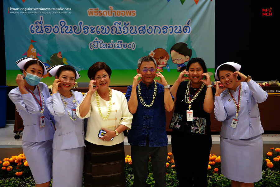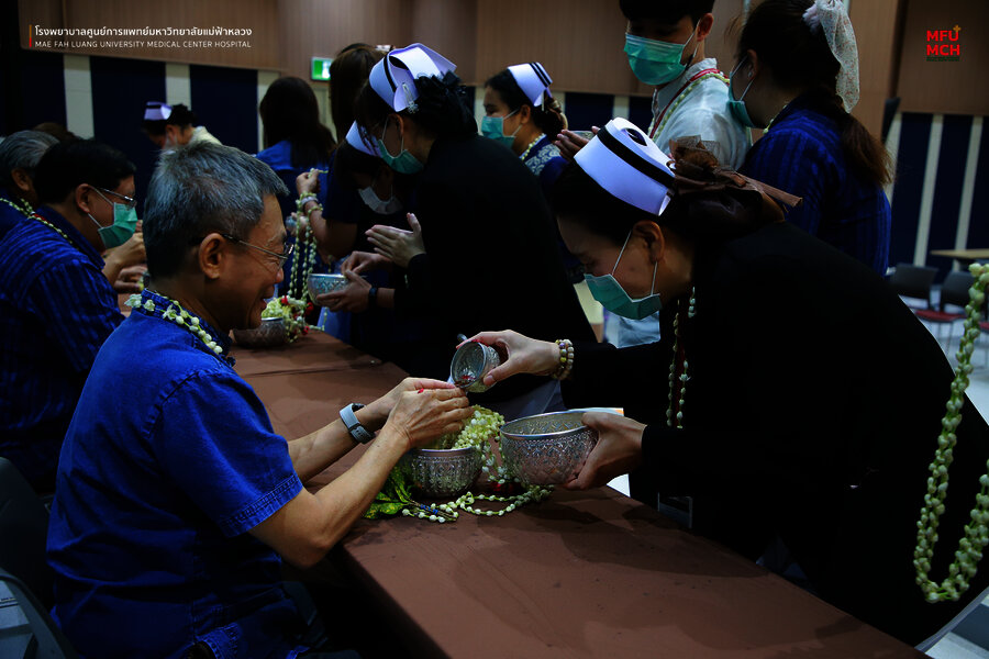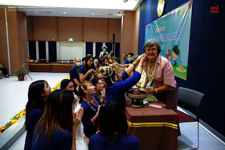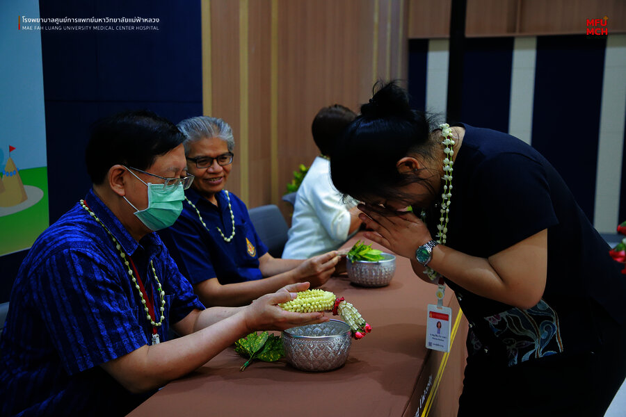 โรงพยาบาลศูนย์การแพทย์มหาวิทยาลัยแม่ฟ้าหลวง (รพศ. มฟล.) จัดพิธีรดน้ำขอพรเนื่องในวันสงกรานต์ (ปี๋ใหม่เมือง) ประจำปี 2567 เมื่อวันอังคารที่ 30 เมษายน 2567 ณ ห้องประชุมประจวบ ภิรมย์ภักดี ชั้น ๖ อาคารศูนย์การแพทย์