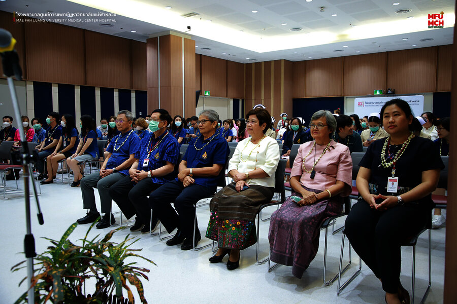 ศาสตราจารย์ นายแพทย์อภิรักษ์ ช่วงสุวนิช รักษาการแทนผู้อำนวยการ โรงพยาบาลศูนย์การแพทย์มหาวิทยาลัยแม่ฟ้าหลวง เป็นประธานในพิธี โดยมีคณะผู้บริหาร หัวหน้าหน่วยงานและพนักงานเข้าร่วมพิธีอย่างพร้อมเพรียง