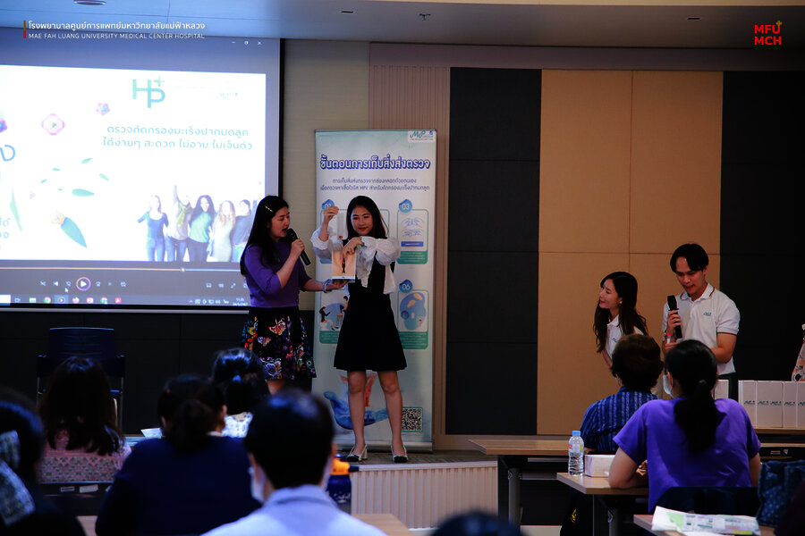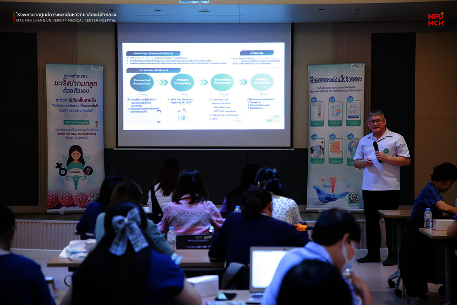 นายแพทย์ วัชรพงษ์ คำหล้า นายแพทย์สาธารณสุขจังหวัดเชียงราย เป็นประธานในพิธีเปิดกิจกรรมอบรมการเก็บสิ่งส่งตรวจตรวจคัดกรองมะเร็งปากมดลูก พร้อมด้วย นายแพทย์ คงศักดิ์ ชัยชนะ รองนายแพทย์สาธารณสุขจังหวัดเชียงราย และ Cancer Warrior จังหวัดเชียงราย, นาวาโทหญิง แพทย์หญิงอุบลวัณณ์ จรูญเรืองฤทธิ์ รักษาการแทนรองผู้อำนวยการ (ฝ่ายพัฒนาคุณภาพและบริการทางการแพทย์) รพศ.ฟมล. , ตัวแทนบริษัท เอ็มพีกรุ๊ป (ประเทศไทย) จำกัด, หน่วยบริการปฐมภูมิ และเครือข่ายหน่วยบริการปฐมภูมิ