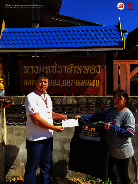 ร้านนางแลปราสาททอง ได้บริจาคเสื้อกั๊กสะท้อนแสง จำนวน 3 ตัว มูลค่า 1,500 บาท ให้แก่งานนิติเวช โรงพยาบาลศูนย์การแพทย์มหาวิทยาลัยแม่ฟ้าหลวง สำหรับใช้ในการตรวจสถานที่เกิดเหตุ เพื่อป้องกันอุบัติเหตุและช่วยการมองเห็นในเวลากลางคืน โดยมี ตัวแทนบุคลากรหน่วยงานเป็นผู้รับมอบของบริจาค