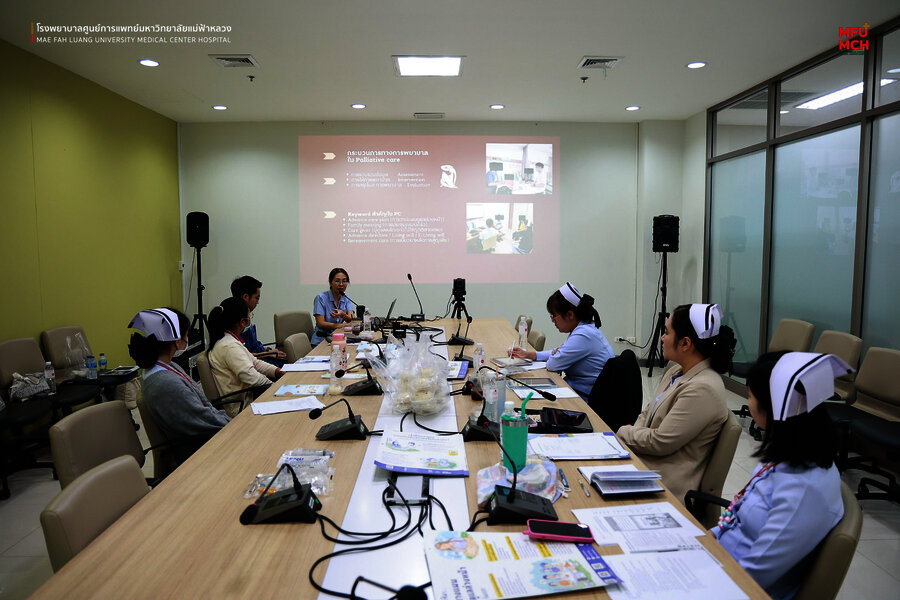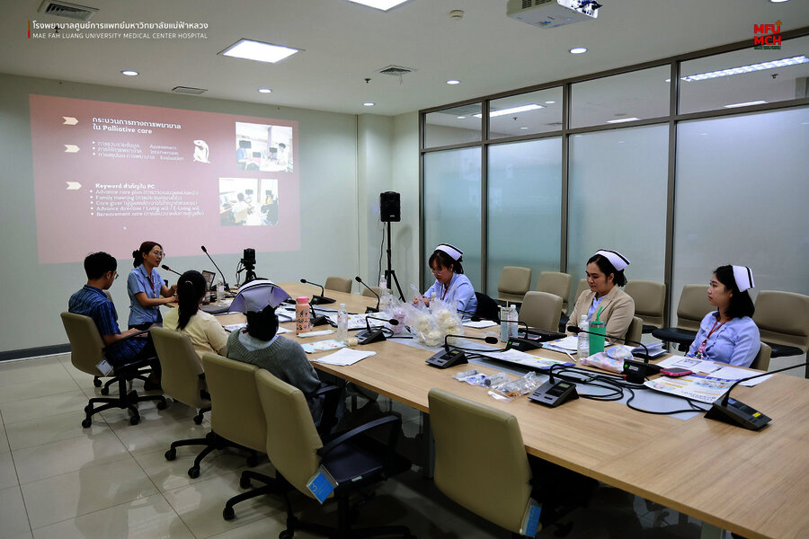 วันที่ 4 เมษายน 2568 ณ ห้องประชุมสำนักงาน ชั้น 4 (ห้องใหญ่) อาคารสนับสนุนบริการ โรงพยาบาลศูนย์การแพทย์มหาวิทยาลัยแม่ฟ้าหลวง หน่วยส่งเสริมสุขภาพ ได้จัดกิจกรรม การอบรม Palliative care ward nurse หัวข้อ “แนวทางและการใช้เครื่องมือในกระบวนการดูแลผู้ป่วยแบบประคับประคอง” ให้แก่พยาบาลวิชาชีพที่ปฏิบัติงานในหน่วยงานต่าง ๆ ภายในโรงพยาบาล