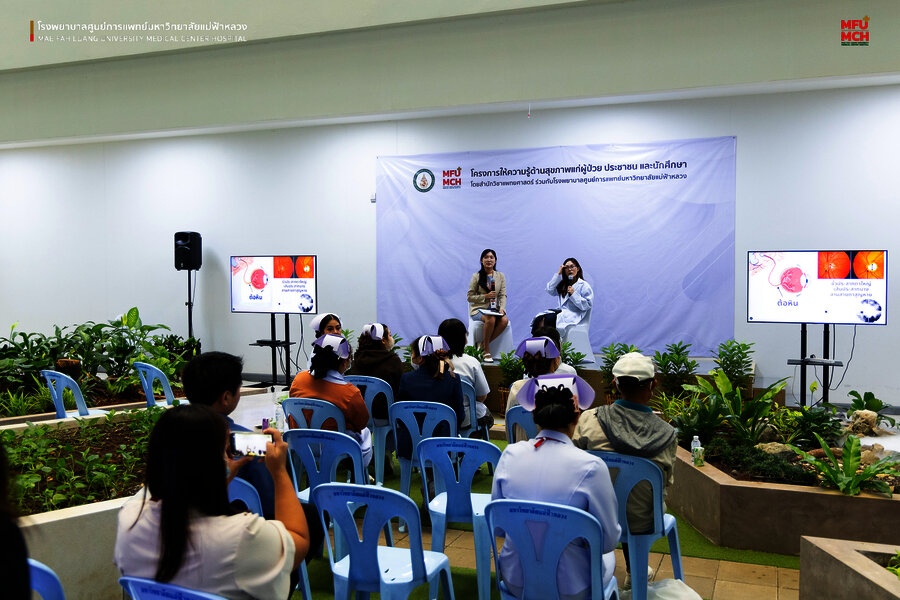 On June 11, 2025, the Mae Fah Luang University Medical Center Hospital, in partnership with the School of Medicine, organized a public health education session focused on four common eye conditions: pinguecula, pterygium, cataracts, and glaucoma. This event was part of an ongoing effort to educate patients, the general public, and students on prevalent eye diseases, emphasizing prevention and proper eye care.