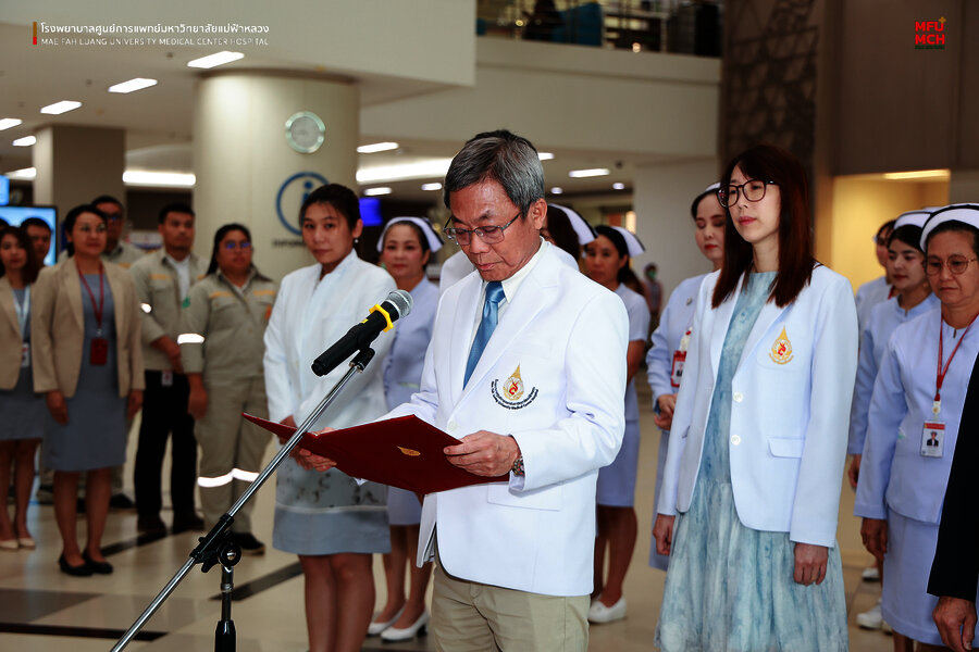 พิธีดังกล่าวได้รับเกียรติจาก ศาสตราจารย์ นายแพทย์อภิรักษ์ ช่วงสุวนิช รักษาการแทนผู้อำนวยการโรงพยาบาลศูนย์การแพทย์มหาวิทยาลัยแม่ฟ้าหลวง เป็นประธานในพิธี พร้อมด้วยคณะผู้บริหาร แพทย์ พยาบาล และบุคลากรของโรงพยาบาลเข้าร่วมอย่างพร้อมเพรียง เพื่อร่วมแสดงออกถึงความจงรักภักดีและสำนึกในพระมหากรุณาธิคุณอย่างหาที่สุดมิได้