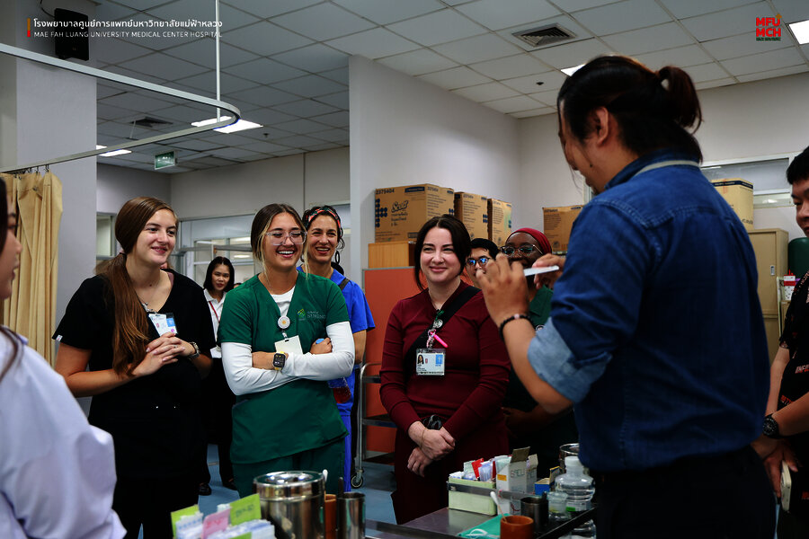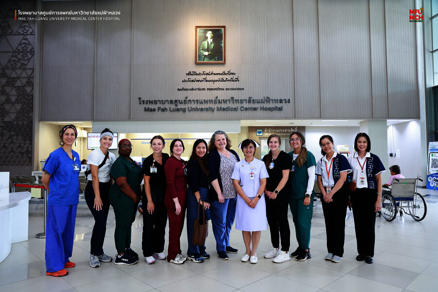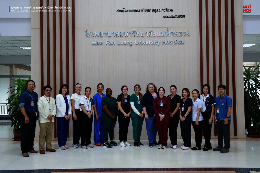 วันที่ 22 สิงหาคม 2568 — โรงพยาบาลศูนย์การแพทย์มหาวิทยาลัยแม่ฟ้าหลวง (รพศ. มฟล.) ให้การต้อนรับคณะอาจารย์และนักศึกษาจาก Oregon Health and Science University, School of Nursing ประเทศสหรัฐอเมริกา ในโอกาสเข้าศึกษาดูงานด้านระบบสุขภาพในประเทศไทย
