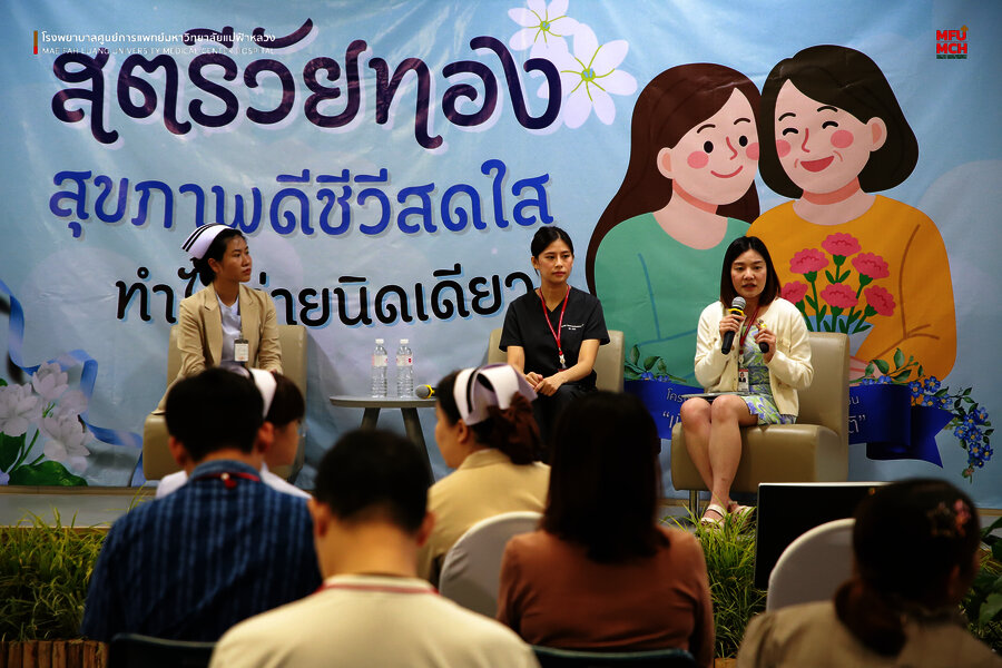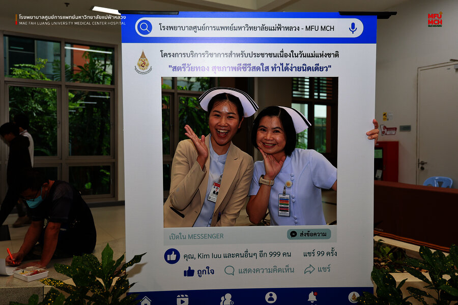 วันที่ 15 สิงหาคม 2568 โรงพยาบาลศูนย์การแพทย์มหาวิทยาลัยแม่ฟ้าหลวง จัดโครงการบริการวิชาการสำหรับประชาชน เนื่องในวันแม่แห่งชาติ ภายใต้หัวข้อ “สตรีวัยทอง สุขภาพดี ชีวีสดใส ทำได้ง่ายนิดเดียว” ณ บริเวณสวนหน้าเอกซเรย์ ชั้น 1 อาคารพิเคราะห์บำบัดโรค โดยมีประชาชนและบุคลากรเข้าร่วมกิจกรรมอย่างคับคั่ง